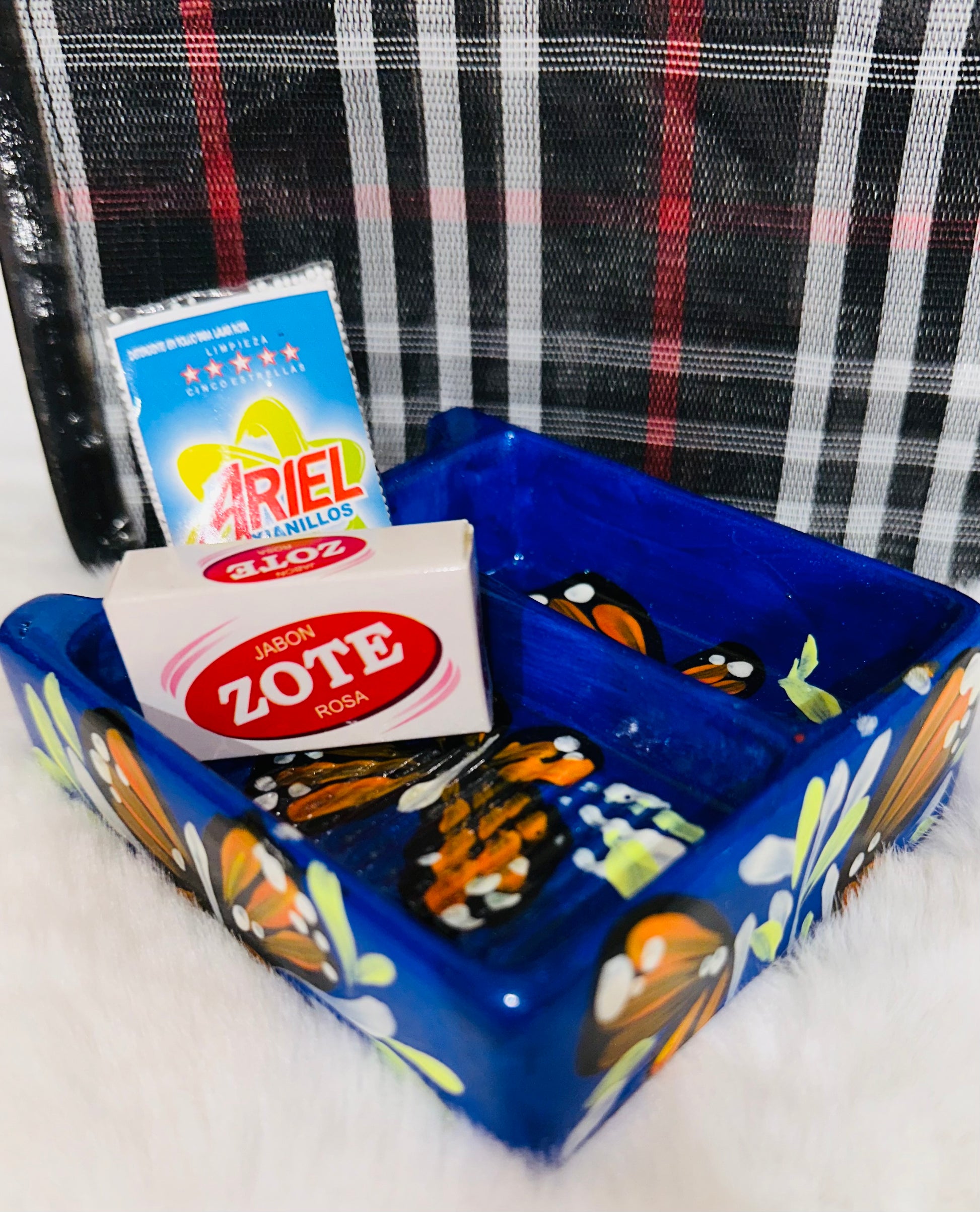 Your lavadero will come in a El Mercado mini bag and with 2 magnetic figurines inspired by Mexico’s traditional detergents
